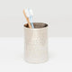 The Pigeon & Poodle Buren Brush Holder offers both textural variety and stunning aesthetics with its crisscross pattern and soft overlay of circles. The black nickel etched metal adds a modern touch to any bathroom with its impressive design.