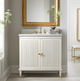 Crafted with meticulous attention to detail, the Covington Vanity boasts a stunning White Carrara Marble countertop that exudes opulence and refinement. The Antique White painted finish lends a touch of vintage charm, while gold leaf detailing adds a regal accent, elevating the vanity to a true work of art.