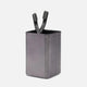 The Pigeon & Poodle Adelaide brush holder features textured stripes—crafted from matte metallics over brass—gives the bathroom a clean, polished look. Rounded corners enhance the shine of each piece.