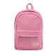 The quilted exterior features a beautiful strawberry-themed pattern, complemented by a classy pink gingham interior.