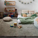 When designing a room with a soft hue, the reversible twin rug by Lorena Canals, featuring a Vintage Blue and Olive tone, is ideal for a pop of color from one side to the next.Β Β