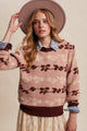 Pullover Style: Easy slip-on silhouette with no closures - Model is 5' 7" 30-24-34.5 and wearing a size Small With its sweet vintage charm and fair isle-inspired pattern, this pullover brings cozy cottage vibes to any outfit-perfect with mini skirts, denim, or layered under a Western-inspired blazer for a trend-forward twist on boho knitwear.