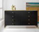 Transform your bedroom with the sophistication of the Modern History Bentley Chest. Crafted from rare Movingui veneer, with sleek black inlay and brass hardware, this chest exudes luxury. Its oak dovetailed drawers provide ample storage space for all your precious belongings. A true masterpiece in every sense.