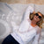 The light gray blanket has a gorgeous custom script "Infinite LOVE" that pops off the blanket in white, feathered fluff. Knitted with our signature micro-chenille and feather yarn combo, making it the silkiest, softest blanket perfect for wrapping up in love.