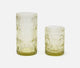 The Fredrick Aqua Glassware set is a deeply rippled texture that gives this hand-blown glassware collection an oceanic feel. Thick walls and a heavy base make these pieces tough enough for breakfast, lunch, and dinner.