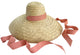 The extra-wide brim sun hat is woven, like a basket, with dried palm tree leaves.Β