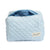The quilted baby blue towel exterior is soft and luxurious, complemented by the elegant striped blue interior.