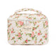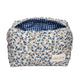 The quilted exterior boasts a beautiful floral pattern, complemented by the classy blue gingham interior.