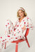 Raise a glass to cozy season in this ivory cotton flannel pajama set, patterned with festive wine glasses topped with poinsettias, bows, and sprigs of holly. This plus-size three-piece design includes a button-down top finished with red piping, relaxed drawstring pants, and a matching headbandβperfect for holiday happy hours, wrapping marathons, and fireside lounging.