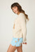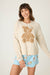 Not too warm, not too light—this snuggle-knit sweater is just right. Made from our softest fuzzy yarn in a heathered oatmeal hue, it features an oversized boucle teddy bear graphic with a sweet embroidered bow for a dose of playful nostalgia. Ribbed trim and subtle contrast cuffs complete the look—cozy, charming, and made for serious lounging.