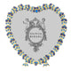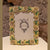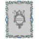 Graceful old world floral designed picture frame, featuring gold finished pewter blossoms and leaves, intricately hand-enameled in soft and neutral tones. Hand-set clear European crystals. Elegant champagne moiré silk back, with easel for vertical or horizontal placement. Tarnish resistant. Signature luxury gift box included.