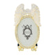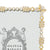 Royal vintage appeal with hundreds of hand-set clear European crystals in gold or silver finished cast pewter. Elegant moiré silk easel back designed for vertical or horizontal placement. Tarnish resistant. Signature luxury gift box included.