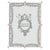 Graceful silver finished cast pewter swag pattern with hand-set clear European crystals and faux pearls. Elegant moiré silk back designed for vertical or horizontal placement. Tarnish resistant. Signature luxury gift box included.