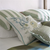 A wonderfully lively, contemporary damask reversible decorative pillow that evokes the stone plaster walls of Provence as well as the painterly strokes of the artists who lived there. Beautifully digitally printed onto pure tumbled linen in serene Eau de Nil blue tones. This large square decorative pillow is finished with a contemporary overlocked edge on all four sides in soft jade. All our decorative pillows come with a luxurious feather pad.
