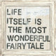 This art print from Sugarboo Designs features a light background with the phrase "Life itself is the most wonderful fairytale" written in capitalized block letters.This inspirational print will add interest to any wall.