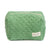 The quilted green towel exterior is thick and soft, complemented by the light pink terry interior.
