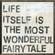 This delightful art print from Sugarboo Designs features a light background with the phrase "Life itself is the most wonderful fairytale" written in capitalized block letters.This inspirational print will add interest to any wall.
