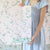 In shades of blush pink and sage green, a flowering apple blossom tree frames a hummingbird, a bluebird, and a butterfly. Soft sprouts of grass frame the bottom of the scene.
