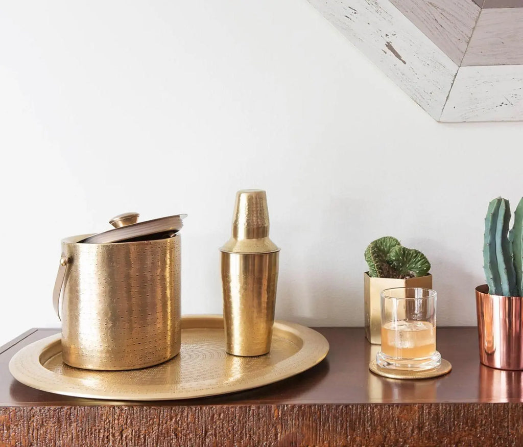 With aΒ crisscross-patterned surface, this Winsford Antique Brass Shaker adds a textural depth to its beautiful shine.