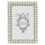 Delicate details with hand-set clear European crystals and faux pearls in gold or silver finished pewter. Elegant moiré silk easel back designed for vertical or horizontal placement. Tarnish resistant. Signature luxury gift box included.