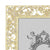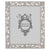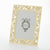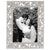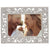 Gold or silver finished pewter floral pattern, richly encrusted with hand-set clear European crystals. Elegant moiré silk back, with easel designed for vertical or horizontal placement. Beveled glass. Tarnish resistant. Signature luxury gift box included.