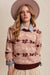 Model Details: 5' 7" 30-24-34.5 wearing size Small. Infused with cozy charm, this floral knit channels soft femininity and a touch of Western romance. Pair it with a flowing midi skirt or your favorite denim for an effortlessly laid-back statement.