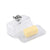 Introducing the Arthur Court Glass Butter Dish with Lid - a tasteful blend of elegance and practicality for your dining experience. This exquisite 2-piece butter keeper is designed to cover and hold a standard stick of butter, ensuring that your butter stays fresh and ready to serve at any time.