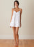 Our most popular Kristen nightgown with spaghetti straps is a favorite for its short, flattering flounce hem and adorable lace trim on the V-neck bodice.