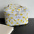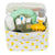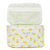 The quilted exterior features a beautiful lemon-themed pattern, complemented by a classy striped green interior.