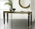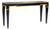 The Modern History Sparro Console presents a study in refined contrasts. Its ebony-painted frame, meticulously enhanced with gold leaf striping, creates a dramatic yet elegant silhouette. The sophisticated black glass top adds a contemporary touch while providing a luxurious surface. This exceptional piece transforms ordinary spaces into curated environments, making a subtle yet unmistakable statement of discerning taste.