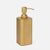The Pigeon & Poodle Adelaide Soap Pump in Matte Gold showcases sleek and modern design with its matte metallics over brass construction. Its rounded corners enhance a brighter shine, while the textured stripes add a clean and polished appearance. Keep your bathroom essentials contemporarily organized.