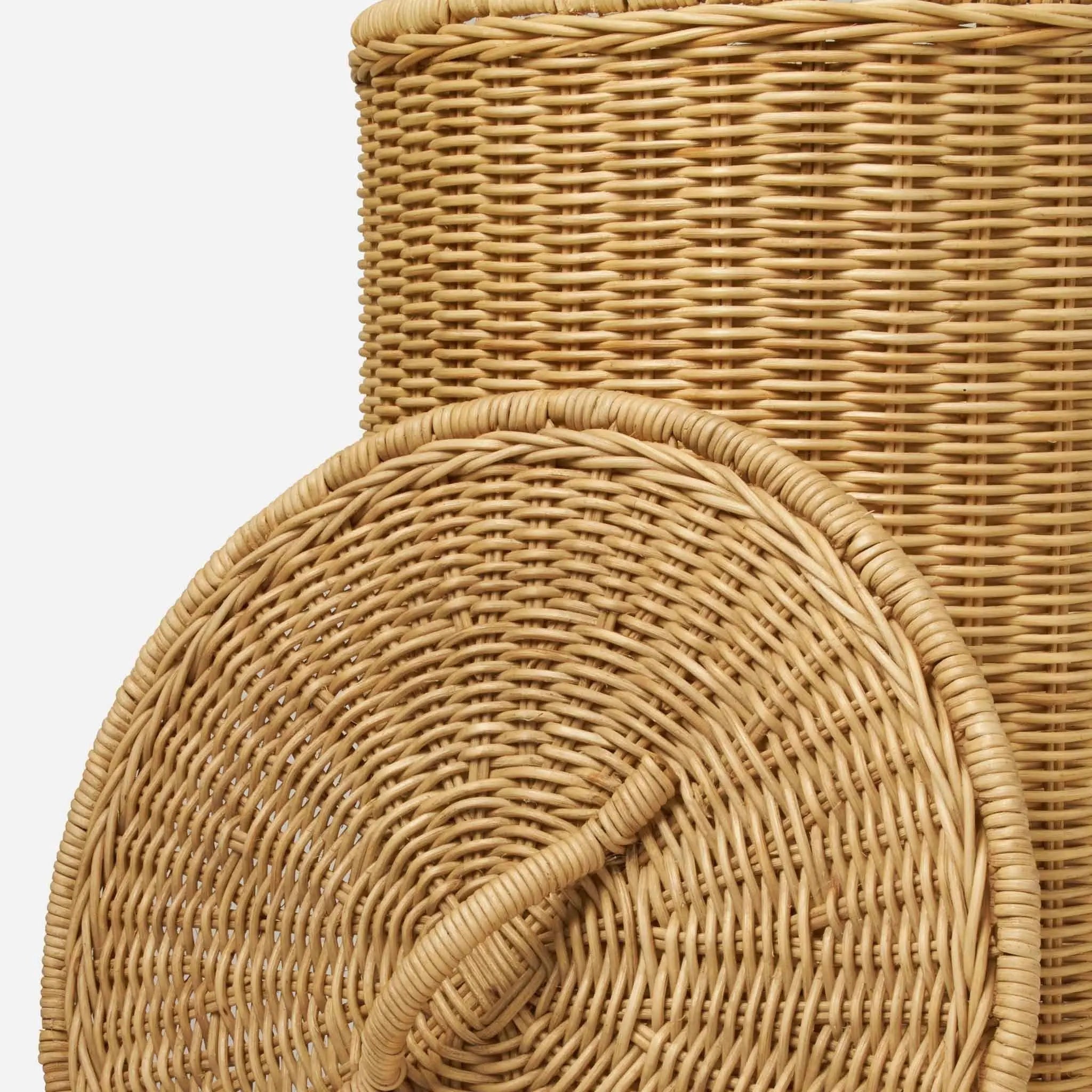 TheΒ Morris Basket is made from strong and durable natural wicker. A great look in any bathroom corner or entryway, this piece offers function while making a statement in your space. The natural tone and sturdy construction are a winning combination.Β