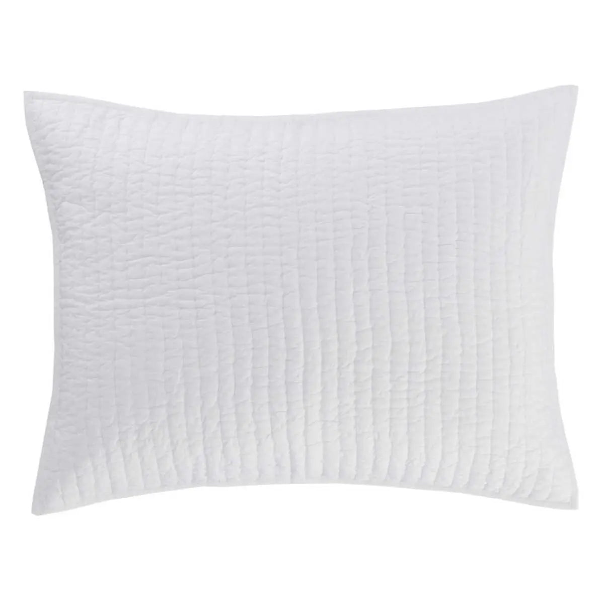 This Lana Voile White Quilted Sham is great for any season! The elegant white color will be a great addition to any dΓ©cor. Breezy cotton voile on the front and back plus a thin layer of battling tied together with traditional hand stitching.