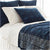 Inspired by traditional Indian Kantha quilts, this beautiful coverlet features a intricately designed block-style print on an ink-colored background and a contrast running stitch on top. The sophisticated dark indigo color will make any room inviting!