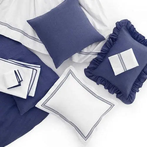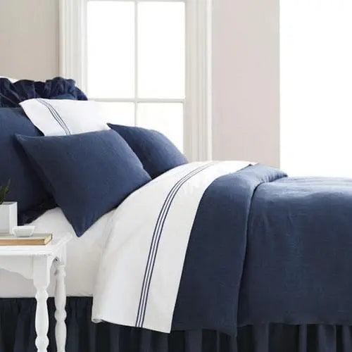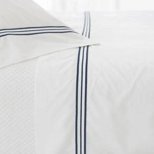 The dark blue indigo color adds a vibrant hue to these classic white sheets. The trio design features three parallel lines that stretch across the classy flat white sheets. Pine Cone Hill has added the perfect combination of luxury and sophistication in the sheets.