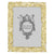 Enhance your space with the grace and beauty of regal plumage. This picture frame is richly cast in gold or silver finished pewter and encrusted with hand-set clear pavé European crystals. Elegant champagne hued moiré silk back, with easel designed for vertical or horizontal placement. Tarnish resistant. Signature luxury gift box included.