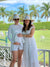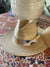 Woven with palm tree leaves, the Zinnia features our signature brass circles for interchangeable ribbons.